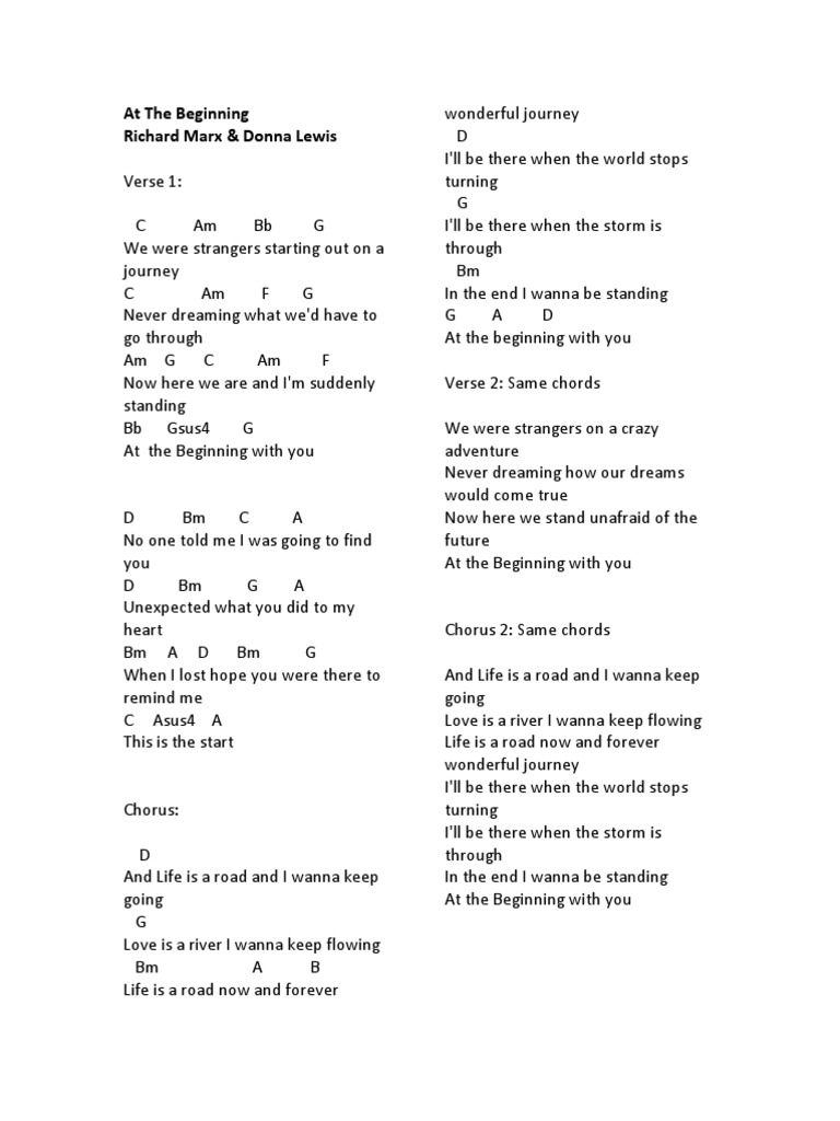 At The Beginning Chords At Mypartitur Lyrics Youtube