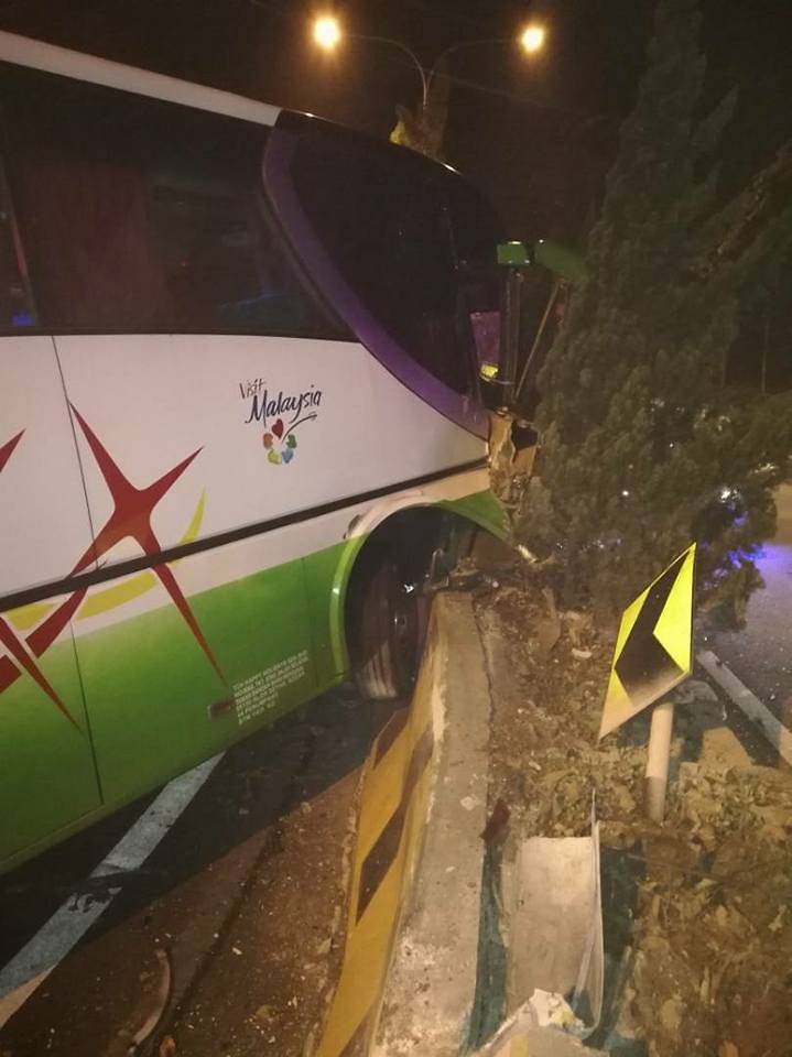 Tour Bus Crashes On The Way Down From Genting Highlands Bus Driver Injured