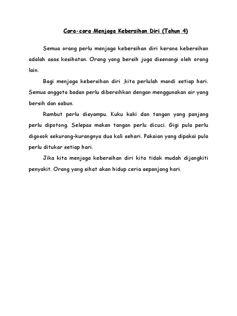 Karangan Cara Cara Menjaga Kebersihan Diri Tahun 4