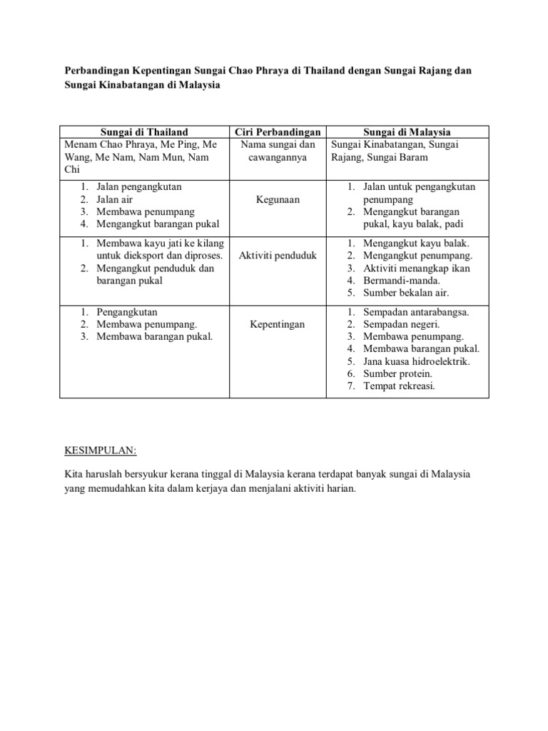 Per Banding An Kepentingan Sungai Chao Phraya Di Thailand Dengan Sungai Rajang Dan Sungai Kinabatangan Di Malaysia
