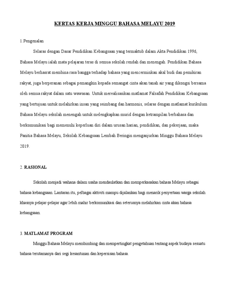 Kertas Kerja Minggu Bahasa Melayu Sumber Pendidikan