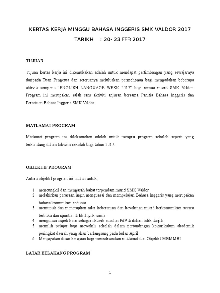 Kertas Kerja Minggu Bi Smk Valdor 2017