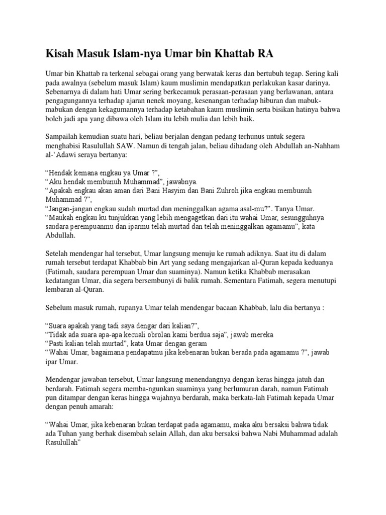 Kisah Masuk Islamnya Umar Bin Khattab Docx