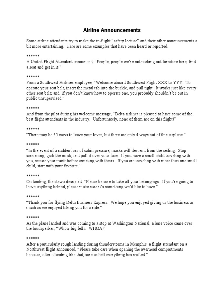 Flight Attendant Announcements Funny Airline Safety The Travel Tart Blog