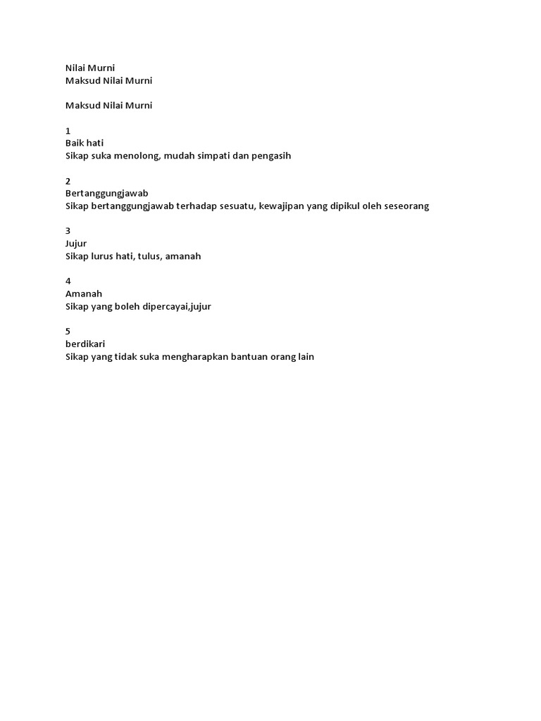 Bahasa Malaysia Tahun 4 Nilai Nilai Murni