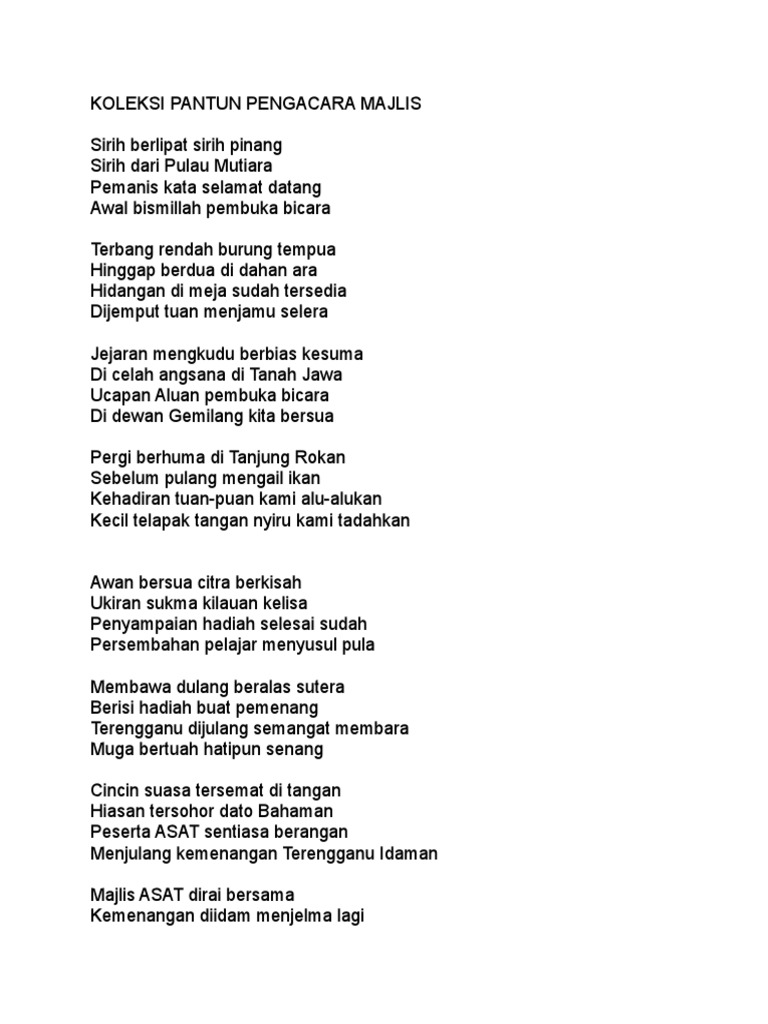 Doc Koleksi Pantun Pengacara Majlis Koleksi Pantun Pengacara Majlis Aslam Yusof Academia Edu