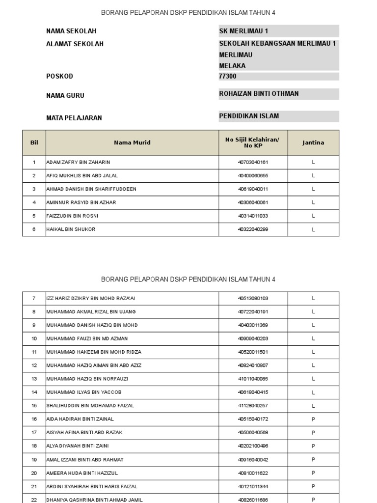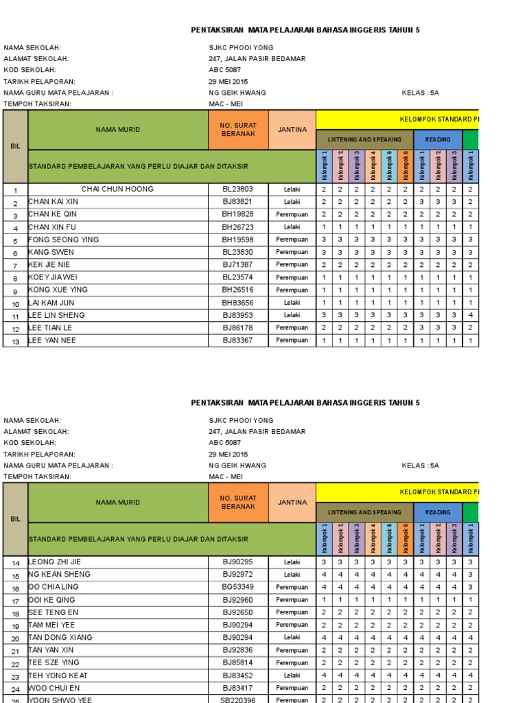 Koleksi Terkini Templat Pelaporan Pbd Kssr Tahun 5 Bumi Gemilang